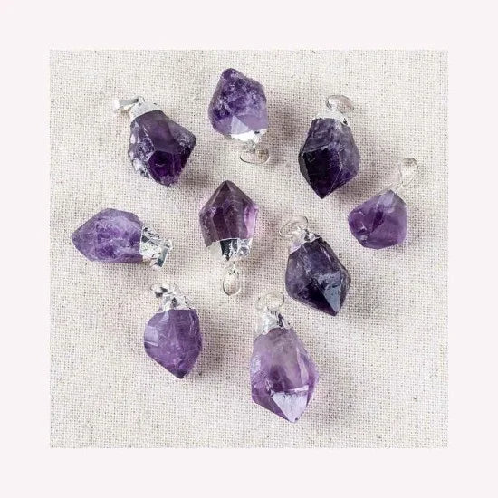 Zincirin ucunda yer alan %100 gerçek ametis taşı, doğanın milyonlarca yılda oluşturduğu benzersiz ve özel bir doğal taştır. Her biri kendine özgü form ve karaktere sahiptir.